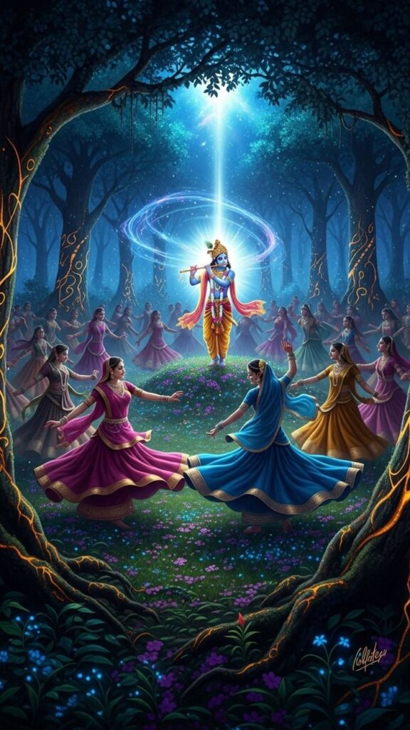 “Também posso entender que Seu aparecimento como um vaqueirinho, um filho dos vaqueiros, não é de modo algum uma atividade material. Você está tão obrigado pelo afeto deles que está aqui para, por Sua presença transcendental, inspirá-los com mais serviço amoroso. Em Vṛndāvana, não existe distinção entre material e espiritual, porque tudo é dedicado a Seu serviço amoroso. Meu querido Senhor, Seus passatempos de Vṛndāvana são simplesmente para inspirar Seus devotos. Está desorientado quem considera Seus passatempos de Vṛndāvana como materiais”.