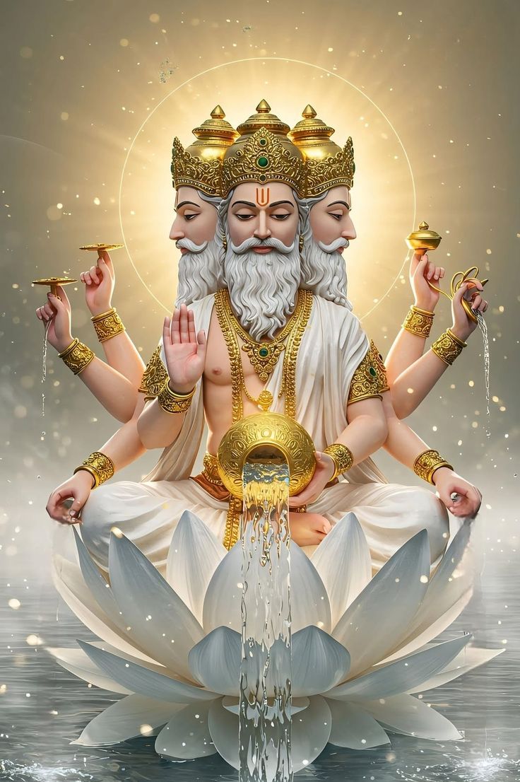 “Pessoas que não têm consciência de Sua energia inconcebível não podem compreender que, sozinho, Você Se expande como o criador (Brahmā) e o aniquilador (Śiva). As pessoas que não têm conhecimento das coisas como elas são consideram que eu, Brahmā, sou o criador, Viṣṇu é o mantenedor, e o senhor Śiva é o aniquilador. Na verdade, você sozinho é tudo – criador, mantenedor e aniquilador. De forma semelhante, Você Se expande em diferentes encarnações; entre os semideuses, encarna como Vāmanadeva; entre os grandes sábios, encarna como Paraśurāma; entre os seres humanos, aparece como Você mesmo, o Senhor Kṛṣṇa, ou como o Senhor Rāma; entre os animais, aparece como a encarnação do javali, e, entre os seres aquáticos, aparece como a encarnação do peixe. E, contudo, Você não tem aparecimento ou desaparecimento, pois é sempre eterno. Seu aparecimento e Seu desaparecimento acontecem por Sua energia inconcebível apenas para dar proteção aos devotos fiéis e para aniquilar os demônios. Ó meu Senhor, ó onipenetrante Suprema Personalidade de Deus, ó Superalma, controlador de todos os poderes místicos, ninguém pode apreciar Seus passatempos transcendentais como são exibidos dentro destes três mundos. Ninguém pode avaliar como Você expandiu Sua yogamāyā e Suas encarnações e como Você atua por meio de Sua energia transcendental. Meu querido Senhor, toda esta manifestação cósmica é como um sonho passageiro, e sua existência temporária simplesmente perturba a mente. Como resultado, estamos cheios de ansiedade nesta existência; viver neste mundo material quer dizer simplesmente sofrer e estar cheio de todas as misérias. E, todavia, esta existência temporária do mundo material parece ser agradável e querida por ter evoluído de Seu corpo, que é eterno e cheio de bem-aventurança e conhecimento”.