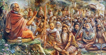 Depois de terminar Seu banho e cerimônias ritualísticas em Gaṅgāsāgara, o Senhor Balarāma procedeu até a montanha de Mahendra Parvata, onde Se encontrou com Paraśurāma, a encarnação do Senhor Kṛṣṇa, e ofereceu-Lhe respeitos curvando-Se diante dEle. Depois disso, Ele Se dirigiu à Índia Meridional e visitou as margens do rio Godāvarī. Após tomar Seu banho no rio Godāvarī e executar as cerimônias ritualísticas necessárias, Ele visitou os outros rios – Veṇā, Pampā e Bhīmarathī. Na margem do rio Bhīmarathī, está a deidade chamada Svāmī Kārttikeya. Depois de visitar Kārttikeya, o Senhor Balarāma prosseguiu para Śailapura, uma cidade de peregrinação na província de Mahārāṣṭra. Śailapura é um dos maiores distritos na província de Mahārāṣṭra. Ele, então, seguiu para Draviḍa-deśa. A Índia Meridional é dividida em cinco partes, chamadas Pañca-draviḍa. A Índia do norte também é dividida em cinco partes, chamadas Pañca-gauḍa. Todos os ācāryas importantes da era atual – ou seja, Śaṅkarācārya, Rāmānujācārya, Madhvācārya, Viṣṇu Svāmī e Nimbārka – nasceram nessas províncias Draviḍa. O Senhor Caitanya, entretanto, apareceu na Bengala, que é parte dos cinco Gauḍa-deśas.