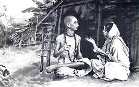 “Com grande compaixão, nosso gurudeva disse: ‘Meus queridos meninos, é muito maravilhoso que vocês tenham passado por tanta dificuldade por minha causa. Todos gostam de cuidar do seu corpo como a primeira consideração, vocês, todavia, são tão bons e fiéis a seu guru que, sem se importarem com confortos físicos, passaram por muitos aborrecimentos por mim. Também me alegro em ver que estudantes autênticos como vocês passarão qualquer tipo de dificuldade para a satisfação do mestre espiritual. Esse é o caminho para um discípulo autêntico ficar livre da sua dívida para com o mestre espiritual. É dever do discípulo dedicar sua vida ao serviço do mestre espiritual. Meus queridos melhores dentre os duas vezes nascidos, estou imensamente satisfeito com seus atos e os abençoo: Que todos os seus desejos e ambições sejam realizados. Que o entendimento dos Vedas que aprenderam de mim continue sempre dentro de sua memória de forma que, em todo momento, vocês possam se lembrar dos ensinamentos védicos e possam citar as instruções sem dificuldade. Assim, vocês nunca ficarão desapontados nesta vida ou na próxima’”.