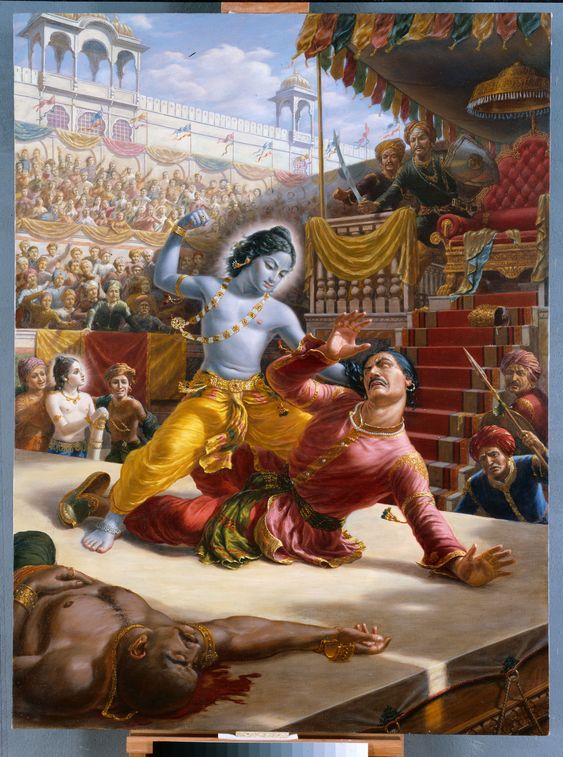 Abaixo link para o livro de Krishna capítulo 44 A Morte de Kaṁsa:
