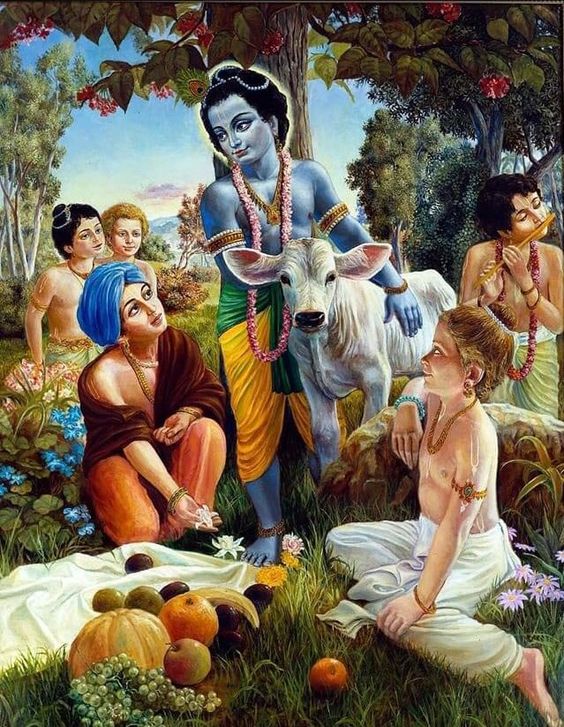 No Śrīmad-Bhāgavatam (10.12.12), declara-se que, mesmo após se submeterem a penitências e austeridades rigorosas e executarem os princípios ióguicos, os grandes yogīs místicos não podem se tornar aptos a alcançar a poeira dos pés de lótus de Kṛṣṇa. Contudo, a mesma Personalidade de Deus, Kṛṣṇa, é facilmente acessível à visão dos residentes de Vṛndāvana. Isto significa que a grande fortuna dos devotos de Vṛndāvana é incomparável. A relação amistosa dos vaqueirinhos com Kṛṣṇa é um tipo particular de êxtase espiritual, quase similar ao êxtase do amor conjugal. É muito difícil explicar este êxtase das aventuras amorosas entre os vaqueirinhos e Kṛṣṇa. Grandes devotos sapientes, como Rūpa Gosvāmī e outros, exprimem seu espanto diante dos sentimentos inconcebíveis presentes em Kṛṣṇa e em Seus amigos vaqueirinhos.
