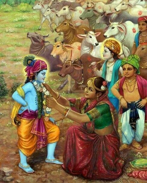 No Śrīmad-Bhāgavatam (10.16.10), figura a seguinte descrição. Quando Kṛṣṇa estava castigando Kāliyanāga no Yamunā, a grande serpente envolveu seus anéis por todo o corpo de Kṛṣṇa, e, ao verem Kṛṣṇa nesta situação, todos os Seus queridos amigos vaqueirinhos ficaram muito perturbados. Devido à desolação, à aflição e ao temor, eles ficaram desorientados e começaram a cair ao solo. Porque os vaqueirinhos estavam na ilusão de que Kṛṣṇa podia passar por algum contratempo, seus sintomas não são nada surpreendentes; eles tinham dedicado sua amizade, suas posses, seus desejos e suas próprias pessoas a Kṛṣṇa.