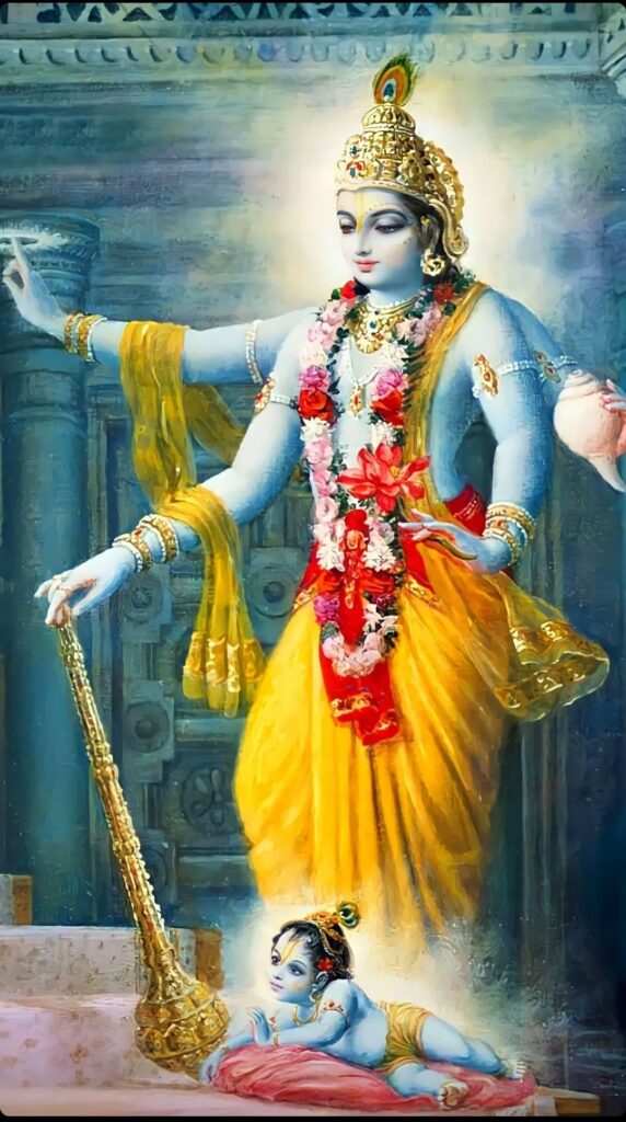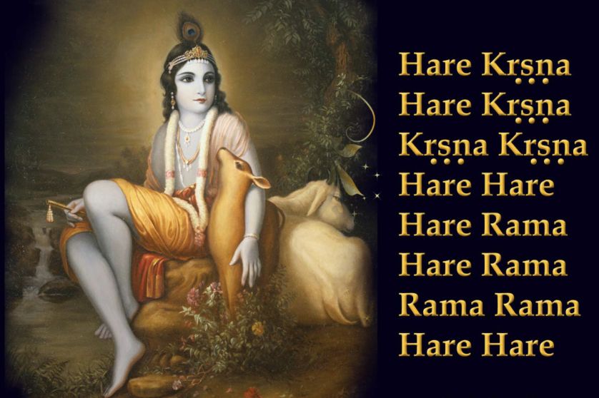 “Sempre e onde quer que haja um declínio na prática religiosa, ó descendente de Bharata, e uma ascensão predominante de irreligião – aí, então, Eu próprio faço Meu advento”. Na era atual, kali-yuga, as pessoas são muito pecaminosas e, consequentemente, estão sofrendo muito. Portanto, Kṛṣṇa faz Seu advento sob a forma de Seu nome, como se encontra no mahā-mantra Hare Kṛṣṇa: Hare Kṛṣṇa, Hare Kṛṣṇa, Kṛṣṇa Kṛṣṇa, Hare Hare/ Hare Rāma, Hare Rāma, Rāma Rāma, Hare Hare.