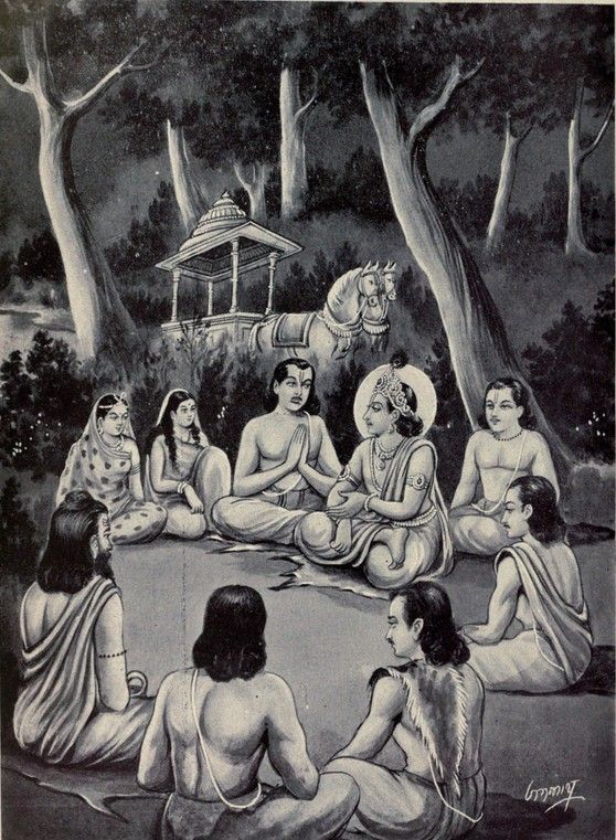 Após a morte de Pāṇḍu, os sábios que viviam na floresta levaram os cinco jovens príncipes para a corte dos Kauravas, em Hastināpura (perto da atual Nova Déli). Em Hastināpura, a capital do reino, os cinco meninos foram criados à maneira real, sob a guia de Dhṛtarāṣṭra e do nobre Vidura, o meio-irmão de Pāṇḍu.