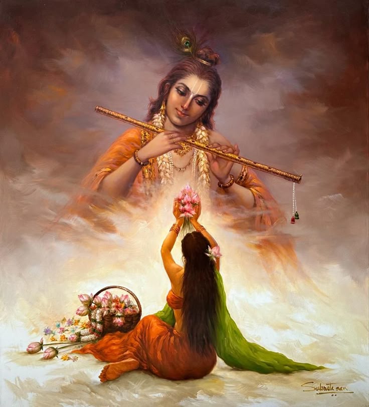“Ó filho de Pṛthā, aqueles que não se iludem, as grandes almas, estão sob a proteção da natureza divina. Eles se ocupam completamente em serviço devocional, pois sabem que Eu sou a original e inexaurível Suprema Personalidade de Deus.”