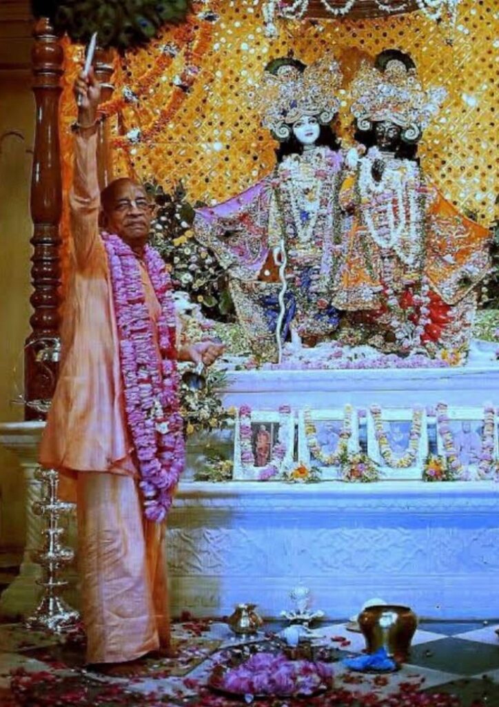 “O devoto deve sempre residir no reino transcendental de Vraja e continuamente se dedicar a kṛṣṇaṁ smaran janaṁ cāsya preṣṭhaṁ, o recordar-se de Śrī Kṛṣṇa e de Seus amados companheiros. Seguindo os passos desses associados e se submetendo à sua orientação eterna, pode-se desenvolver um intenso desejo de servir a Suprema Personalidade de Deus.”